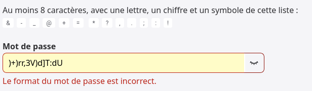 Voici la regex du password: `^(?=.*[a-zA-Z])(?=.*\d)(?=.*[&_@+=*?,.;:!\-])[a-zA-Z0-9&_@+=*?,.;:!\-]{8,50}$`