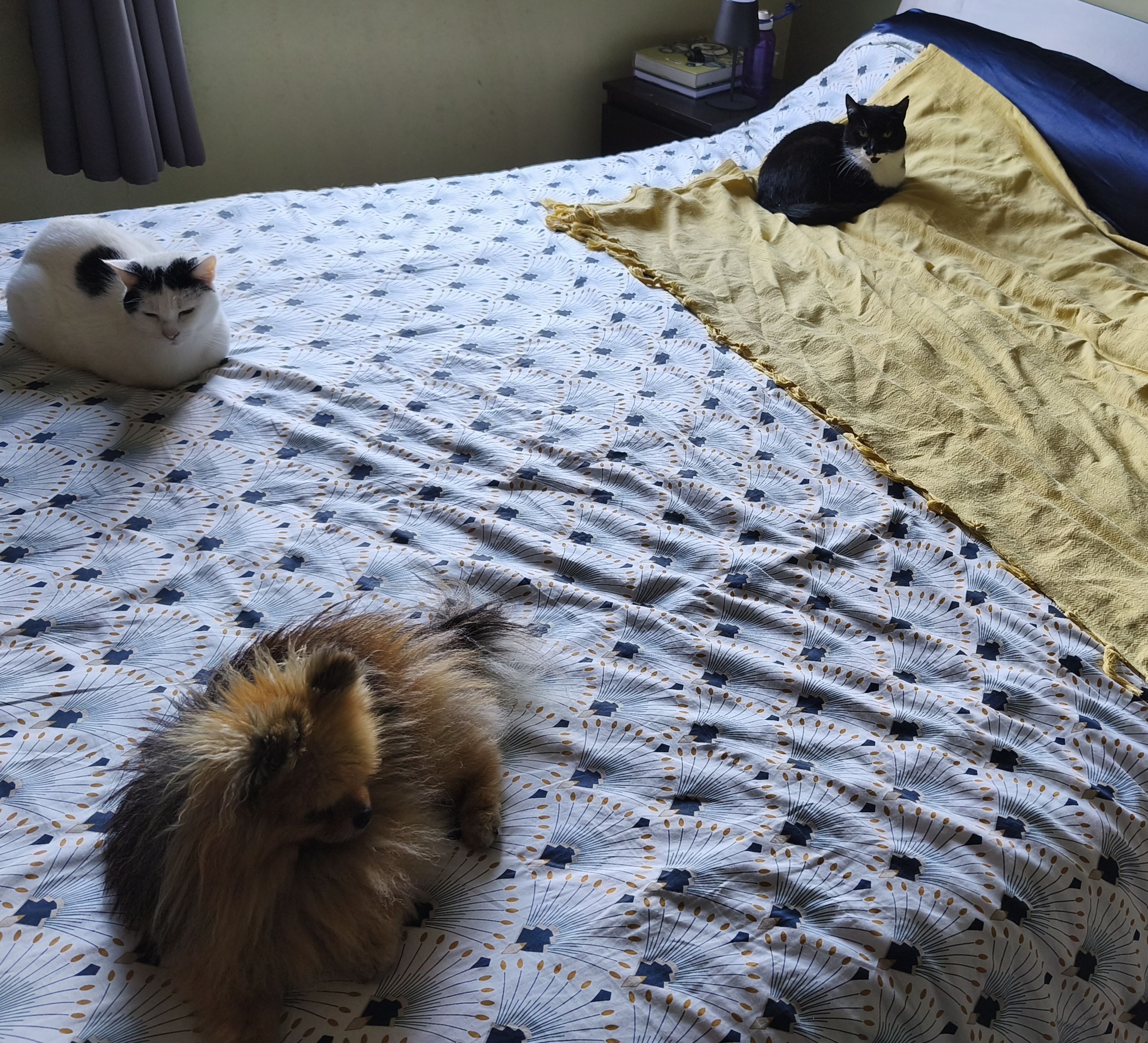 @oldsysops je vois très bien, quoi qu'ici il n'y a qu'un chat en plus de la femme... un vrai pot de colle forte. C'est un amour qui ne réclame jamais à manger, mais réclame tt le temps notre présence, notre attention... Le poids de l'amour c'est terrible. Mais on ne saurait pas vivre sans.