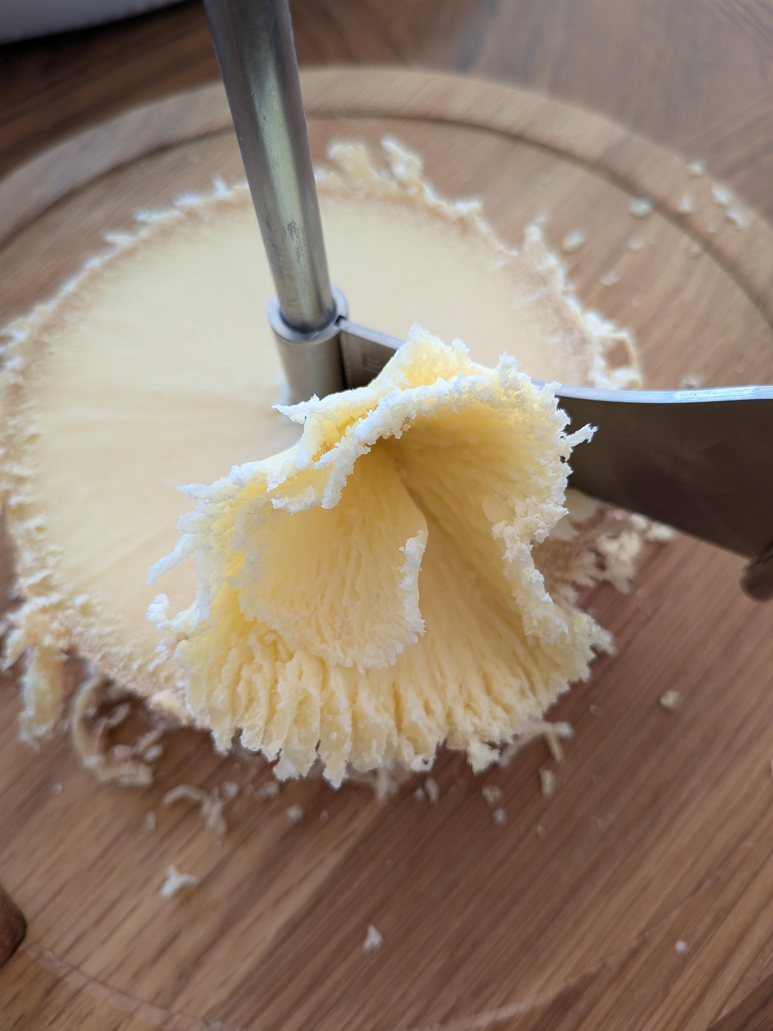 Pour le moment j'ai tout misé sur une machine en chêne pour râper du fromage "Tête de Moine" en forme de fleurs.