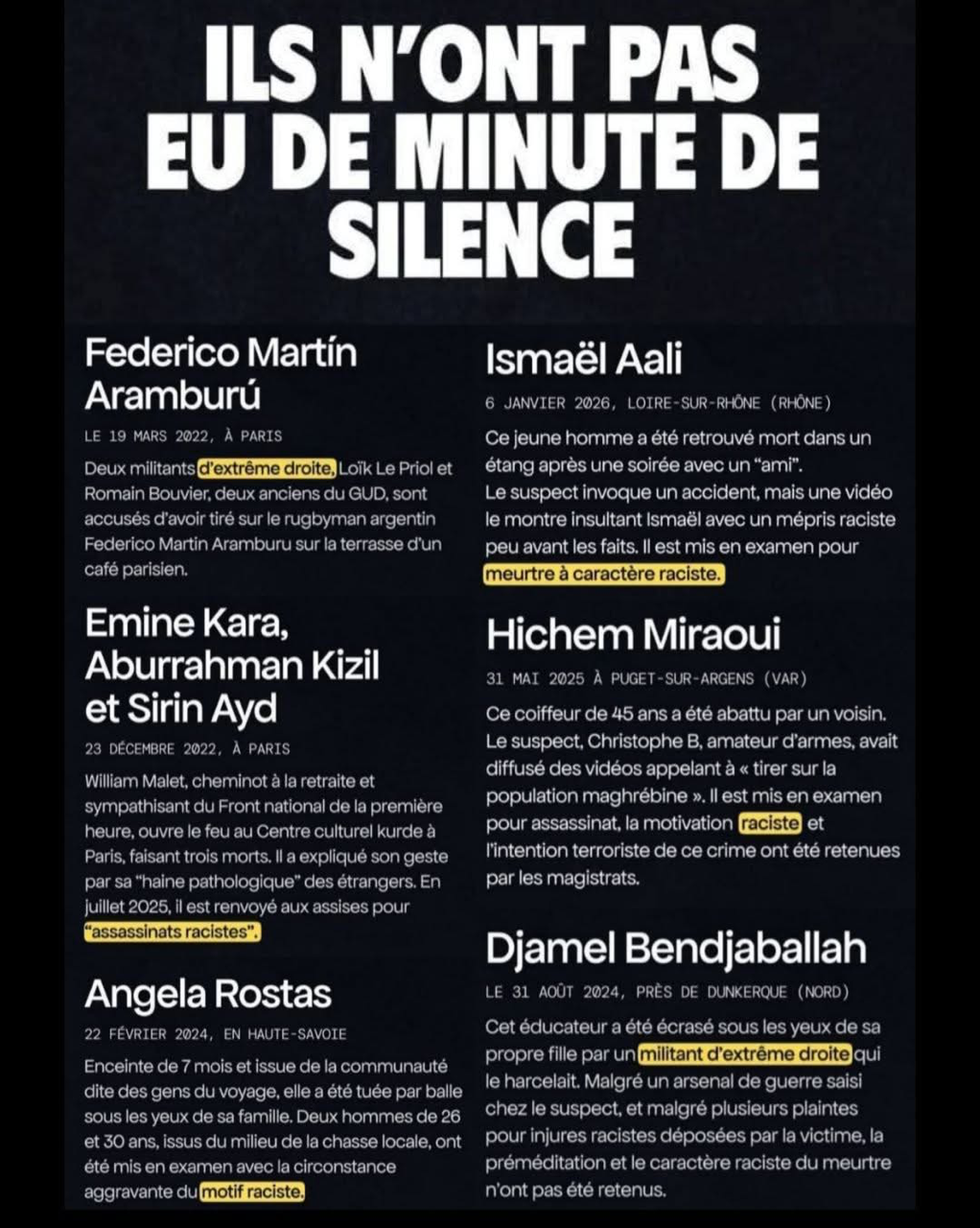 ILS N’ONT PAS EU DE MINUTE DE SILENCE