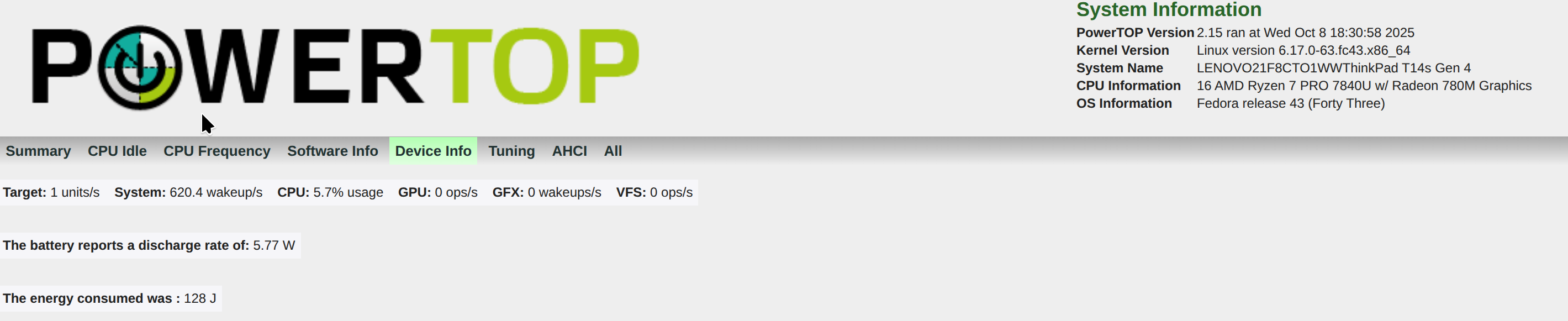 The power-management of the Lenovo T14s Gen4 AMD Ryzen has gotten significantly better in Kernel 6.17, WOW !!