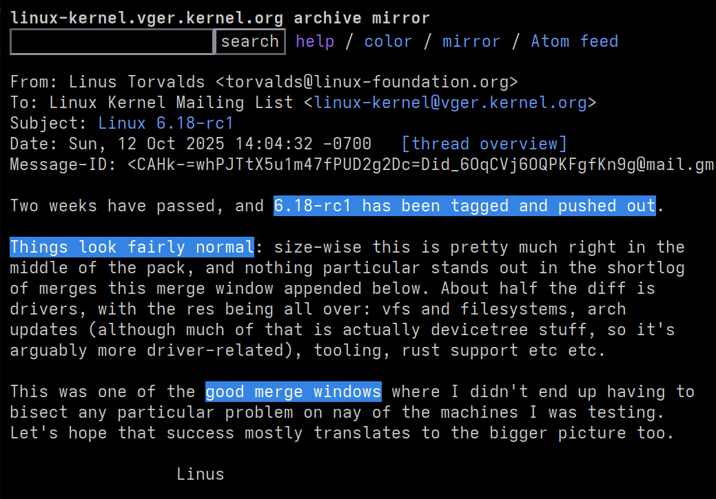 Makes me glad that Linus at some point insisted on pull request summaries for the #Linux #kernel that he then stored as merge commits comment (yes, that is normal these days, but in the first few years [10?] of using git for the #LinuxKernel is wasn't like that)
