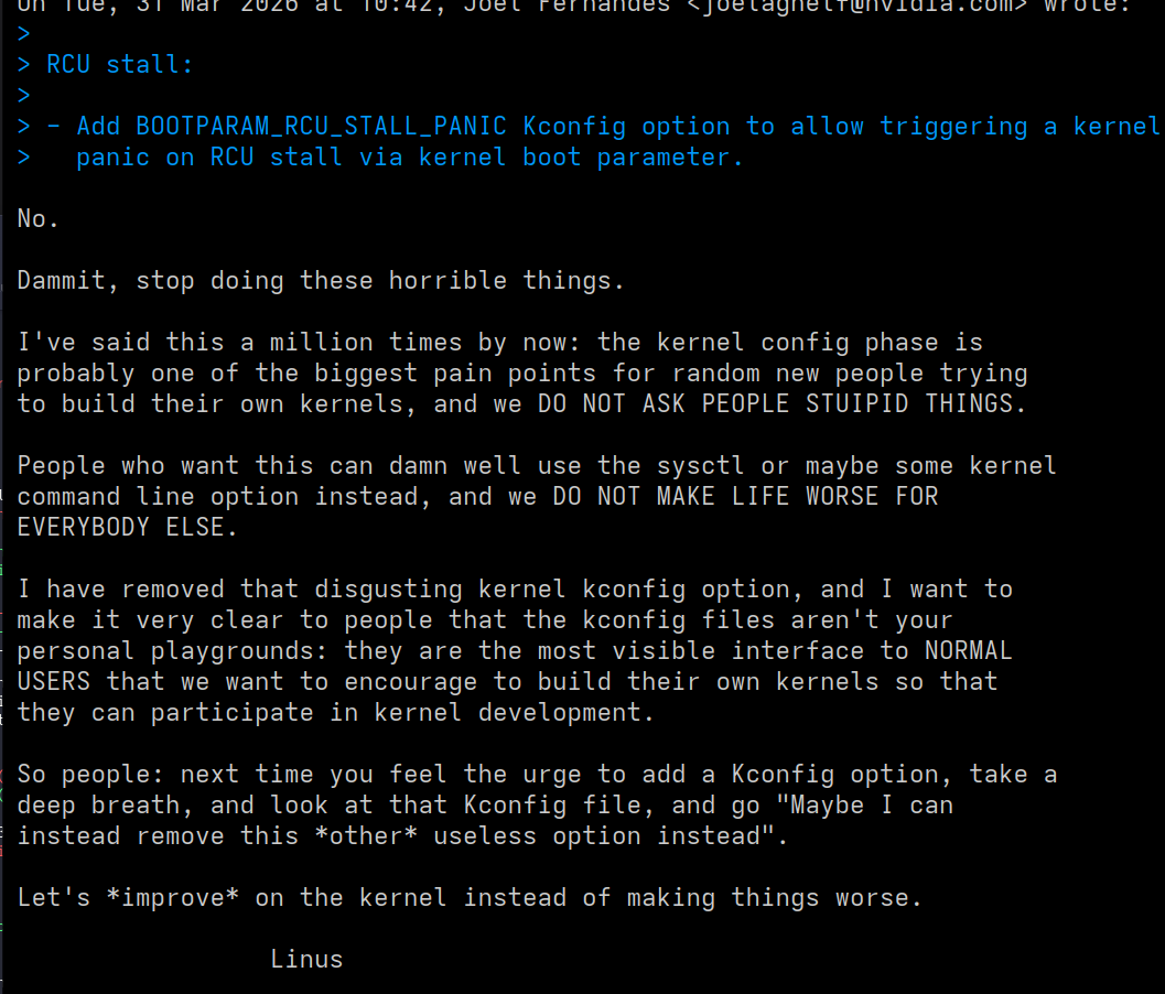 @ethauvin I have some problems with the last of them, at least when it comes to the #Linux #kernel: https://hachyderm.io/@kernellogger/116374083334503805