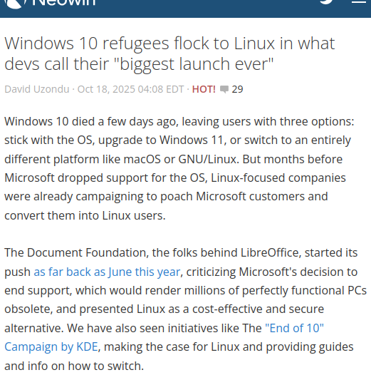 Nouvel article sur notre site : "La fin du support gratuit de #Windows10, le moment de passer à #Linux ?" https://www.opensource-experts.com/La-fin-du-support-gratuit-de-Windows-10-le-moment-de-passer-a-Linux.html Avec mention aux veilles réalisées dans le cadre du marché de support logiciel libre piloté par la DGFiP, rédigées par @arawa