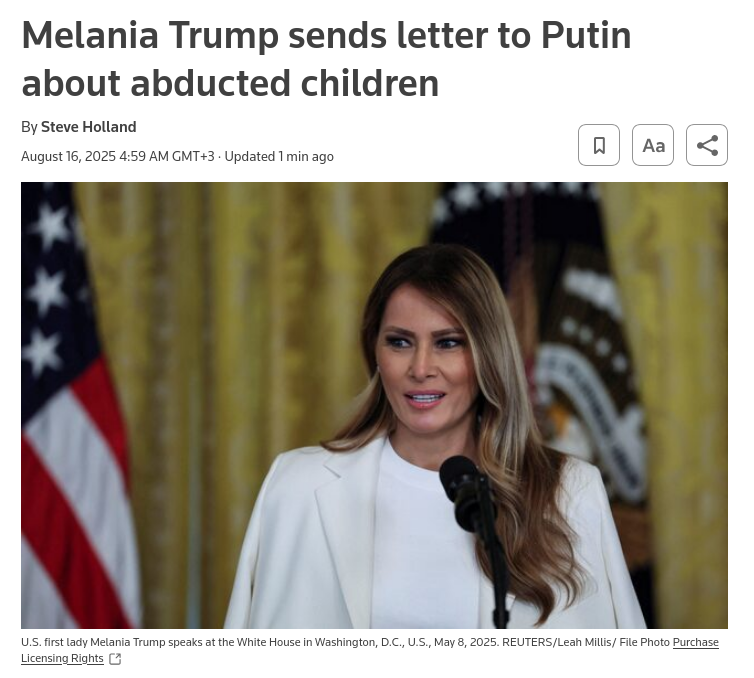 https://www.reuters.com/world/melania-trump-sends-letter-putin-about-abducted-children-2025-08-16/