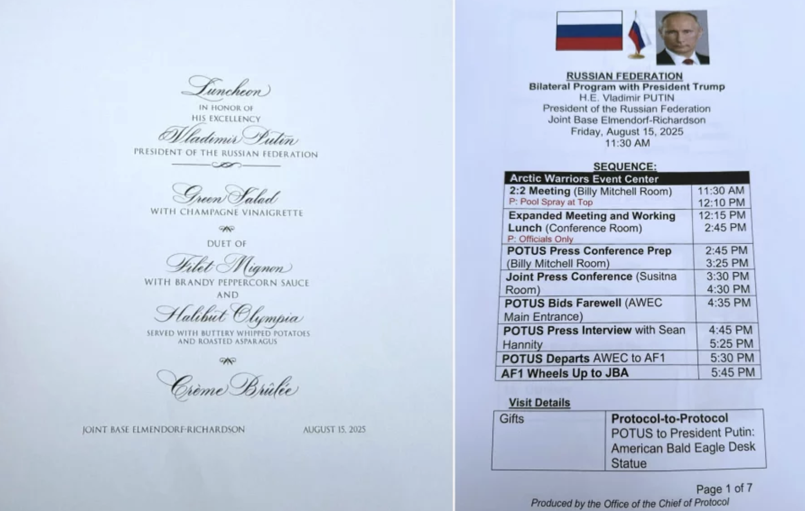 Le média NPR, à qui Trump a coupé les vivres fédéraux, dévoile des documents internes sur l'organisation du sommet organisé en Alaska pour Poutine. Notez les noms pompeux de plats en français. Ce sommet a offert au dictateur russe un retour sur la scène internationale, sans aboutir ni à une trêve dans la guerre, ni à de nouvelles sanctions https://www.npr.org/2025/08/16/nx-s1-5504196/trump-putin-summit-documents-left-behind