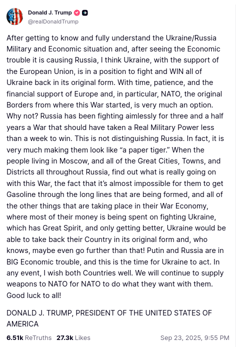 It's terrible, while Putin invaded Ukraine, apparently Zelensky has to "choose for peace" according to Trump by giving up territory...