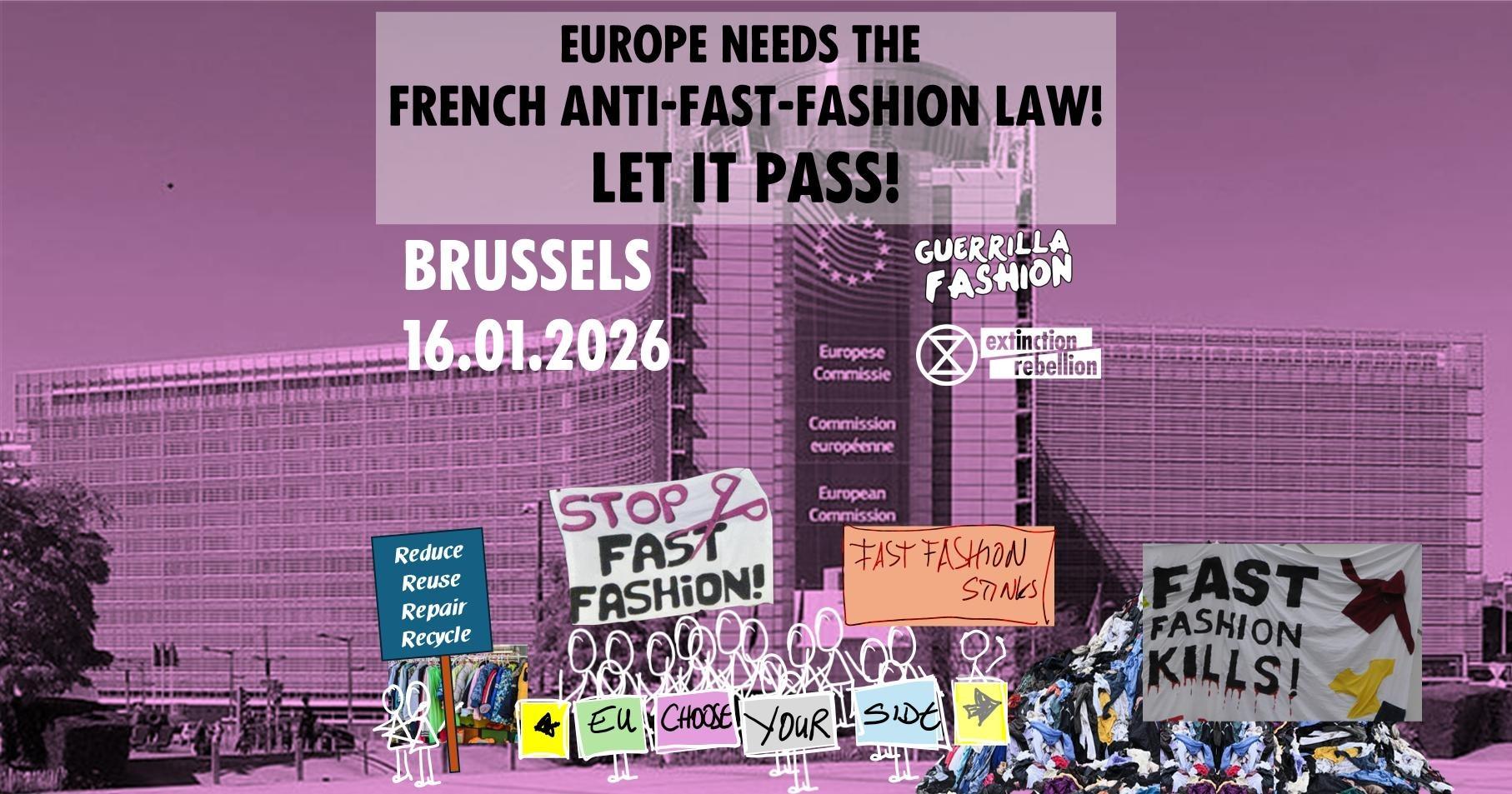 Suite à nos nombreuses actions de désobéissance civile dénonçant l'impact ultra délétère de la "Fast Fashion" / Mode Jetable, enfonçons le clou avec la manif/action à #Bruxelles du 16 janvier prochain pour exiger que la législation européenne suive la mobilisation citoyenne 📢