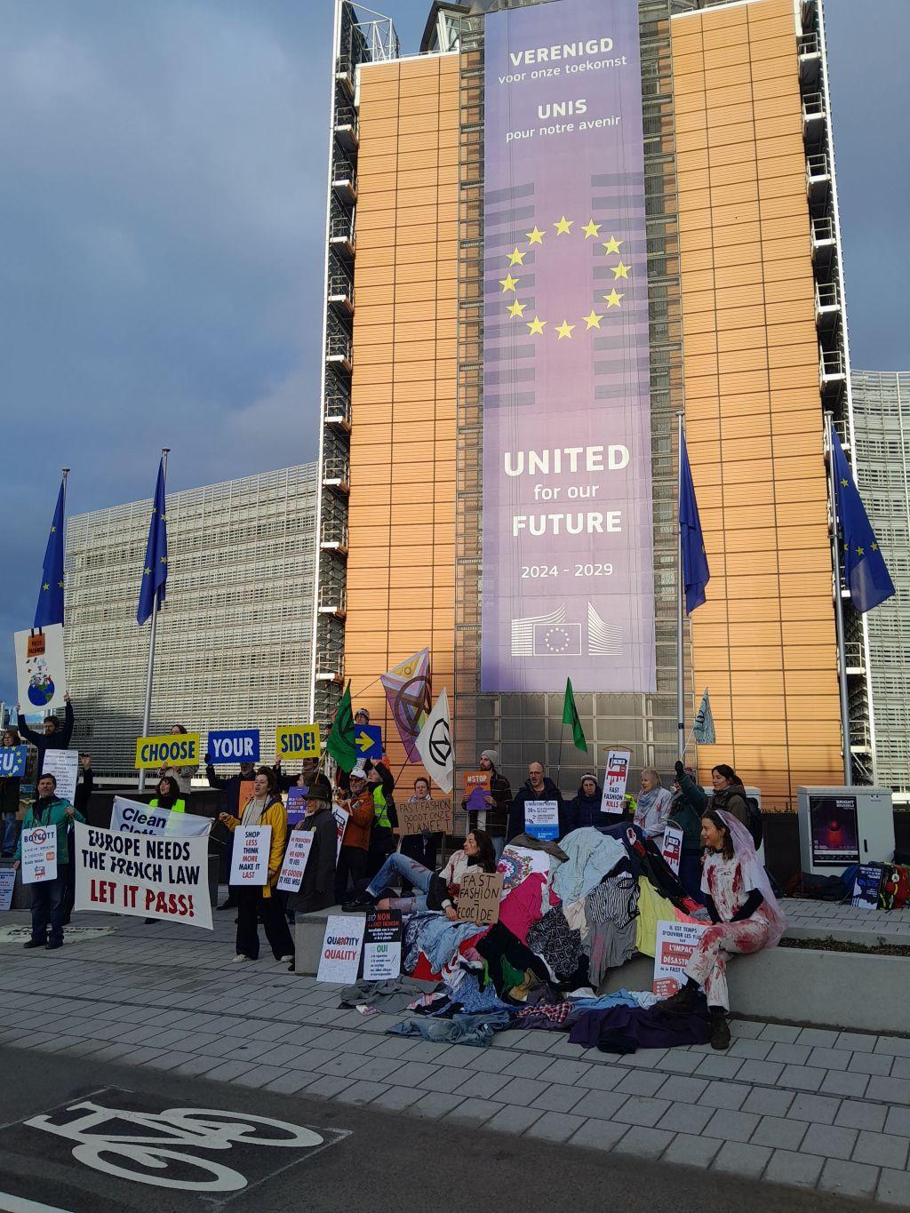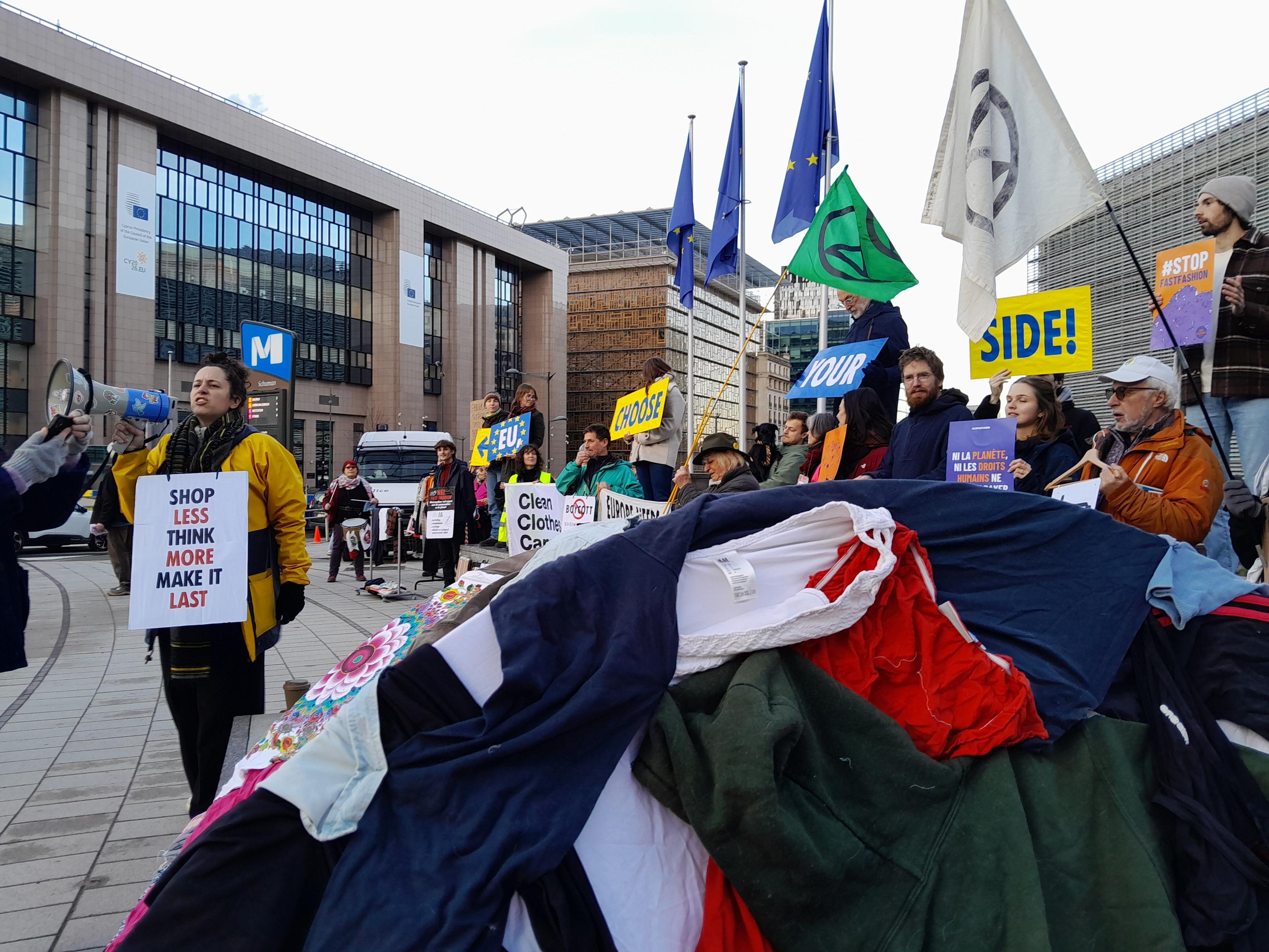 Mobilisation face à la #FastFashion devant le parlement européen à #bruxelles : Le secteur du textile est un désastre écologique & social, or des alternatives existent !