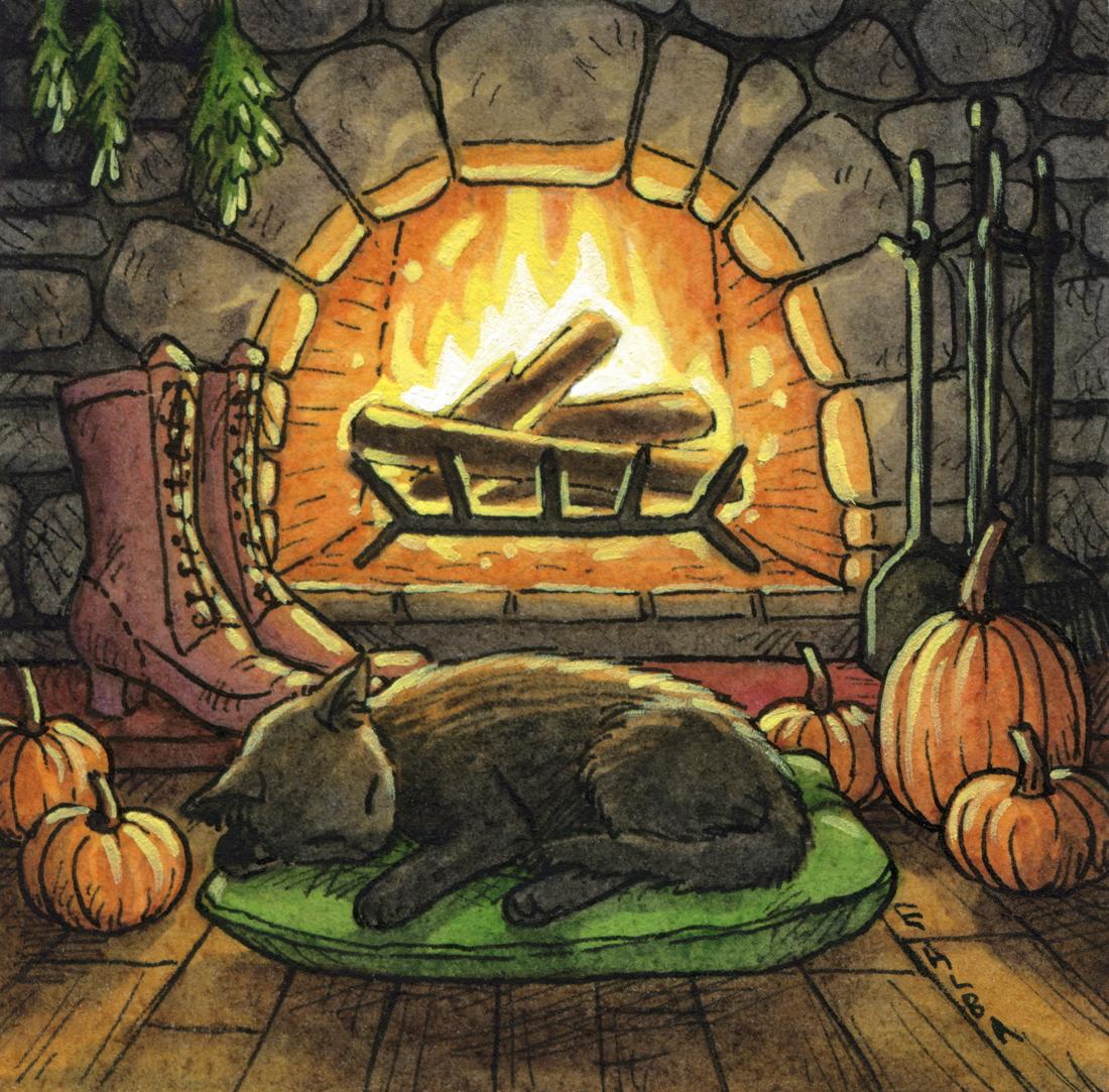 #caturday #blackcat #cats #catsofmastodon #fire #cozy #cottagecore #mastoart #fediart #witch #pumpkin #fallvibes #fall #autumn