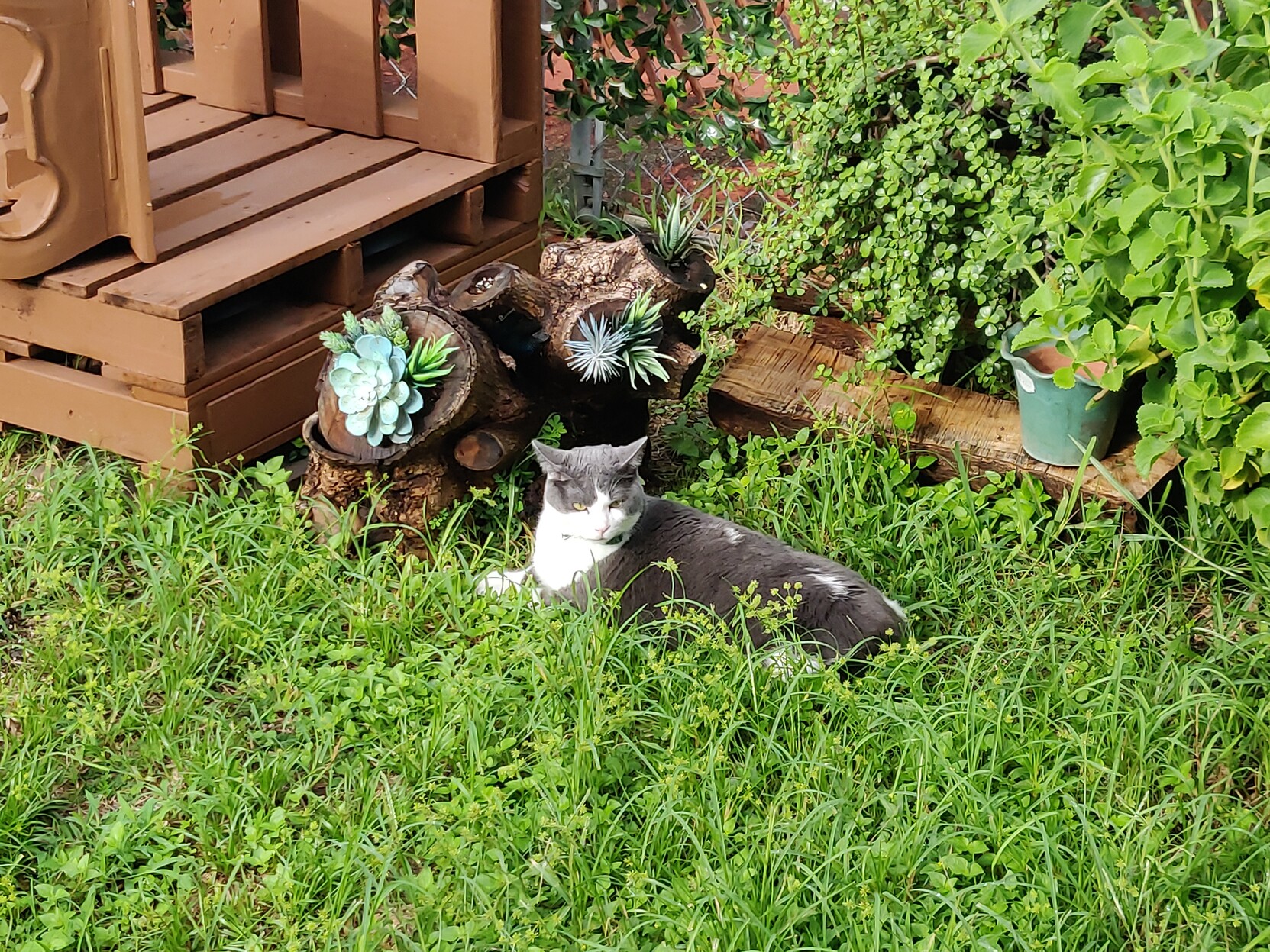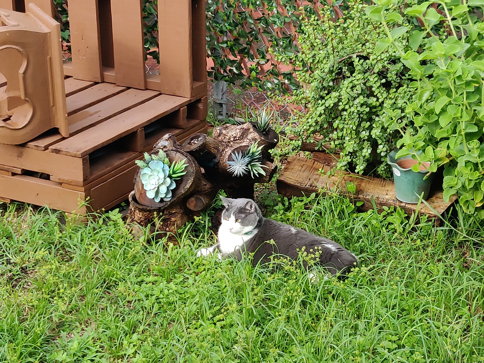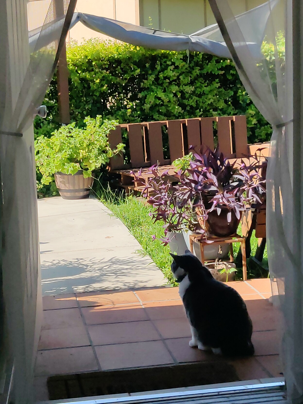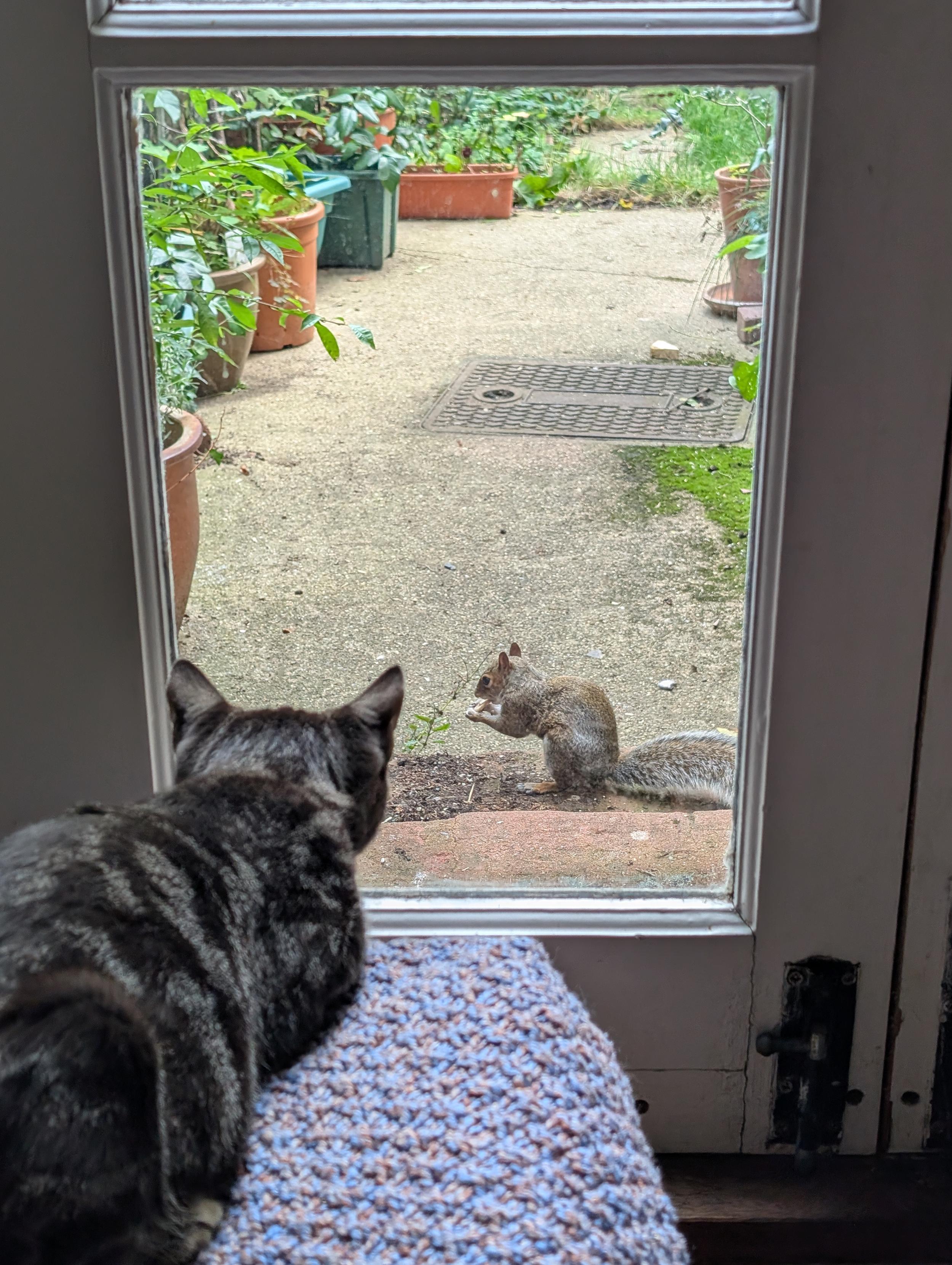 Happy #Caturday to all who celebrate. When no one opens the door for him, he searches for an opening in my "Garden Center".
