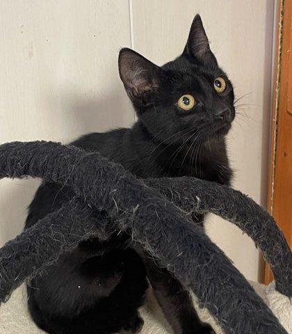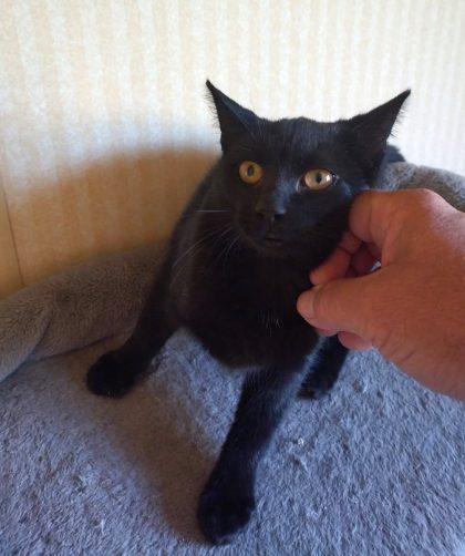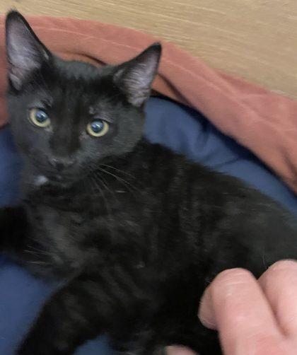 NÎMES – Alba est une jolie chatonne noire aux yeux orange. Très sociable et joueuse, elle ronronne quand elle est dans les bras.