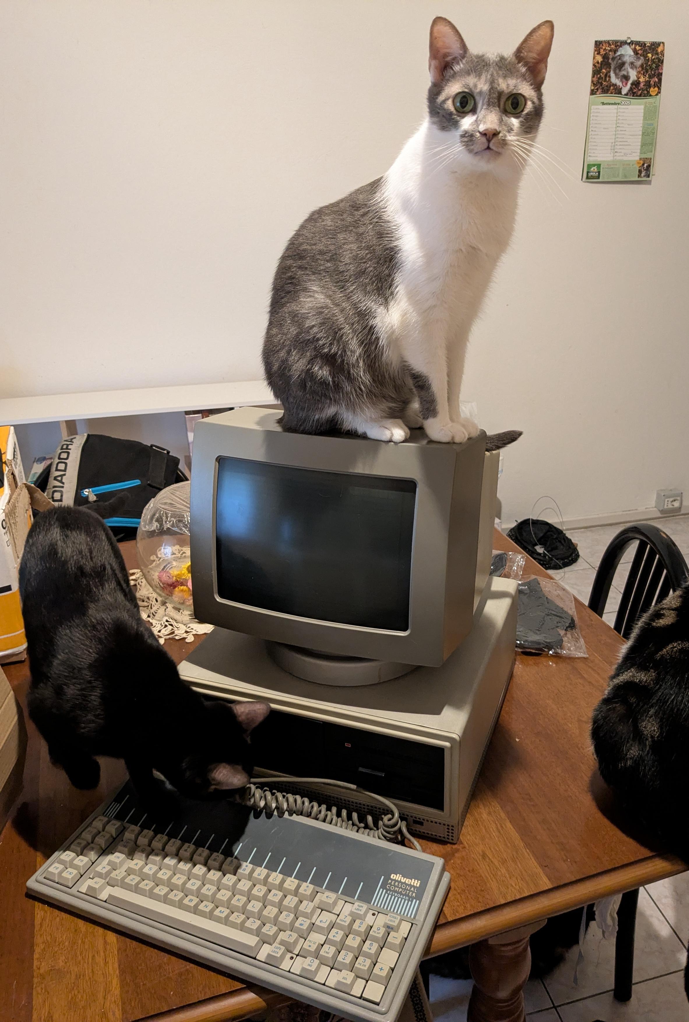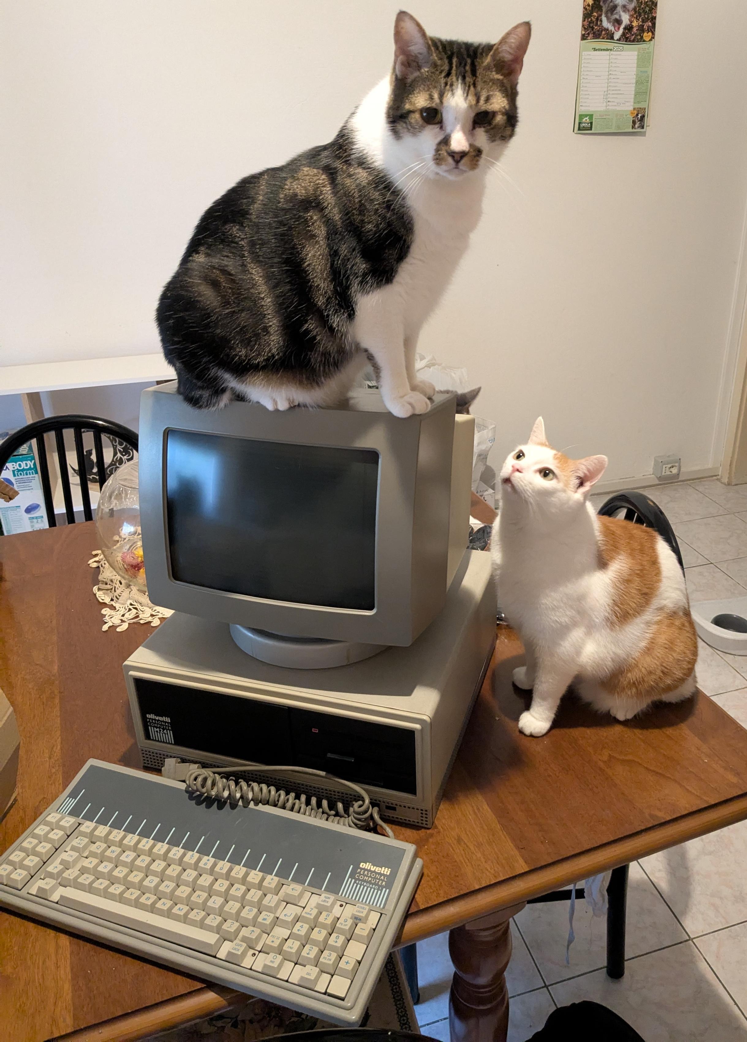 This #caturday my cats are testing the Olivetti M(eow)24.
