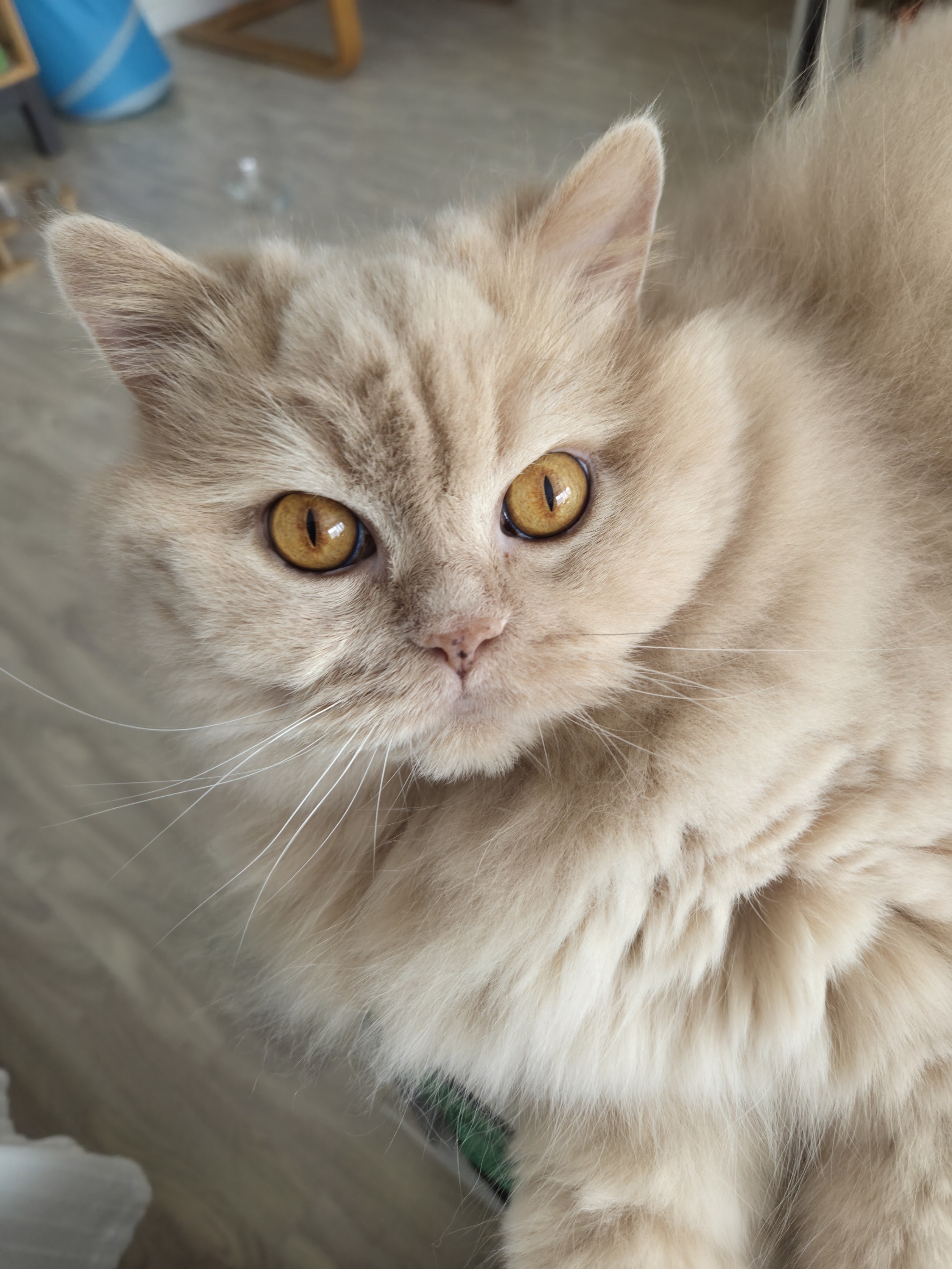 Il est très calme, solitaire et très câlin avec l’humain. C’est un chat d’intérieur qui tolère les autres chats,.