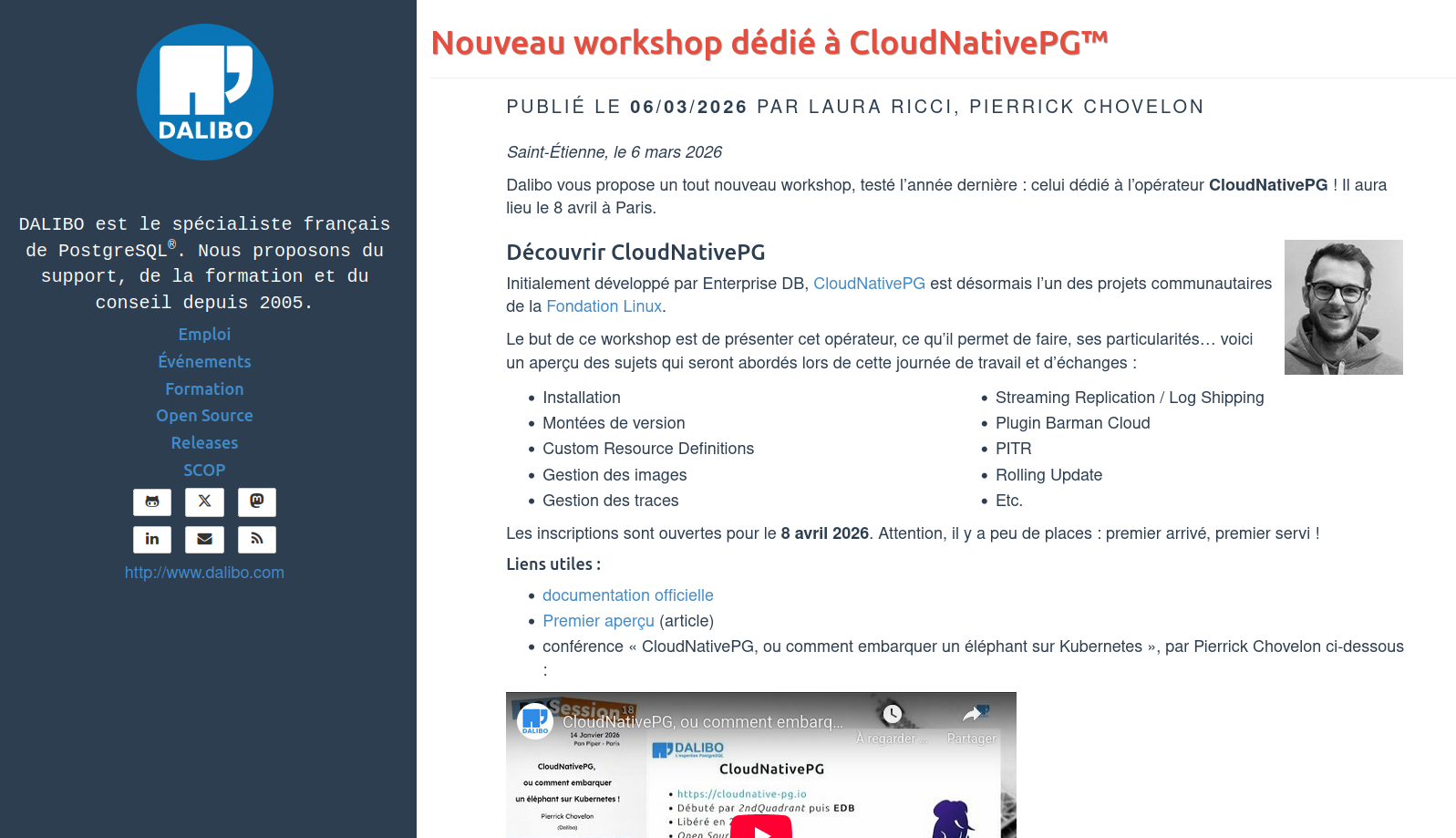 Le 8 avril prochain à Paris, nous vous proposons un #workshop dédié à l'opérateur #CloudNativePG.