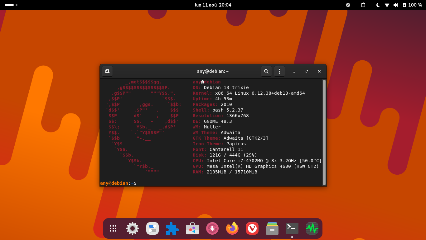L'aventure s'est poursuivie avec Linux #Mint, où j'ai passé de longues années entre Xfce et #Cinnamon. Et en 2025, c'est finalement Debian qui a conquis mon bureau avec son interface Gnome.