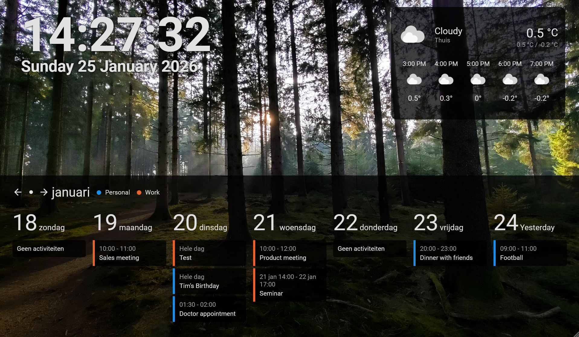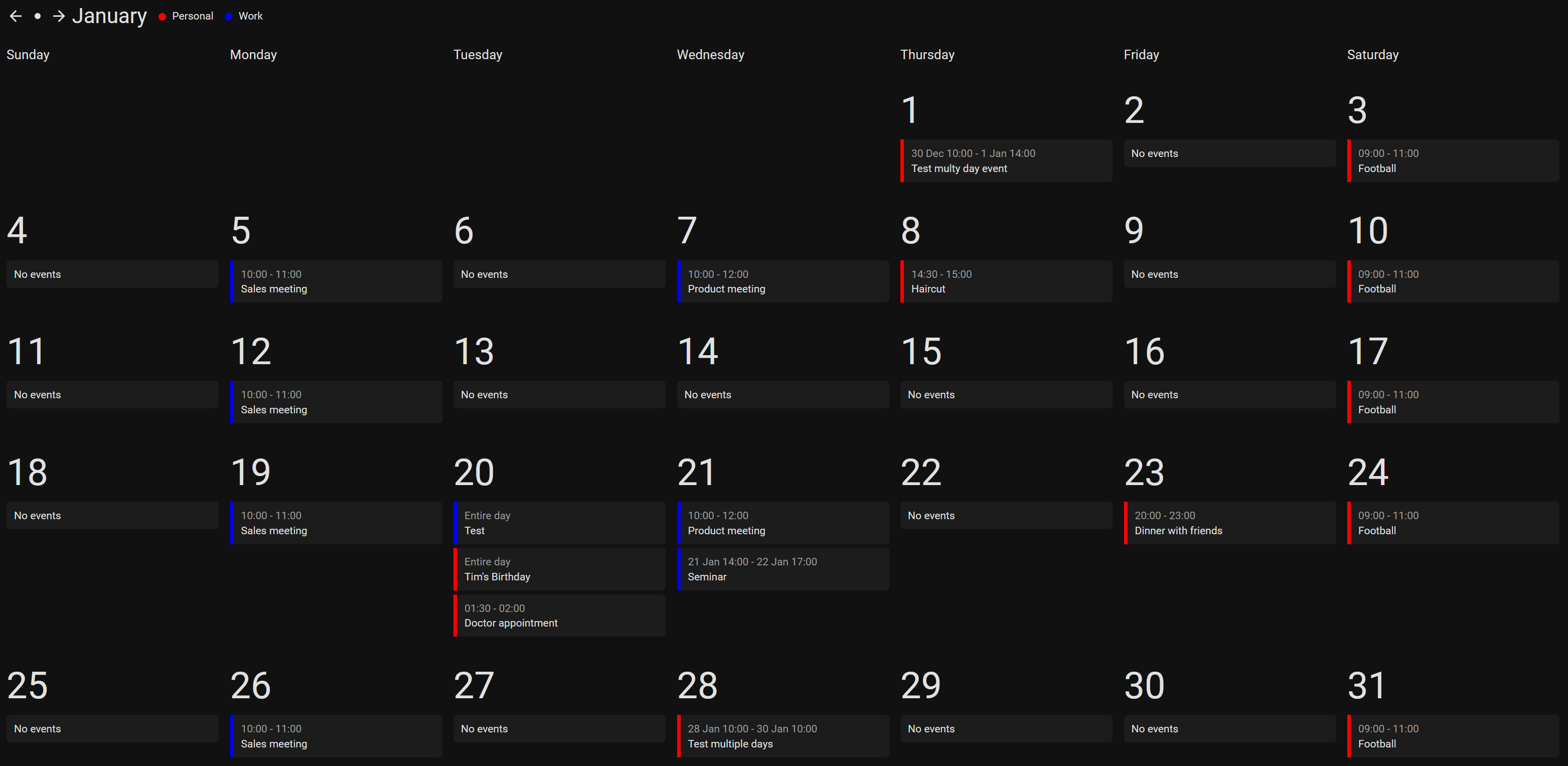Just released version 1.14.0 of #HomeAssistant custom card week-planner-card. This version includes an option to hide full day events, the ability to change weather icons with card-mod or custom theme and an option to change the way multi day events are handled.
