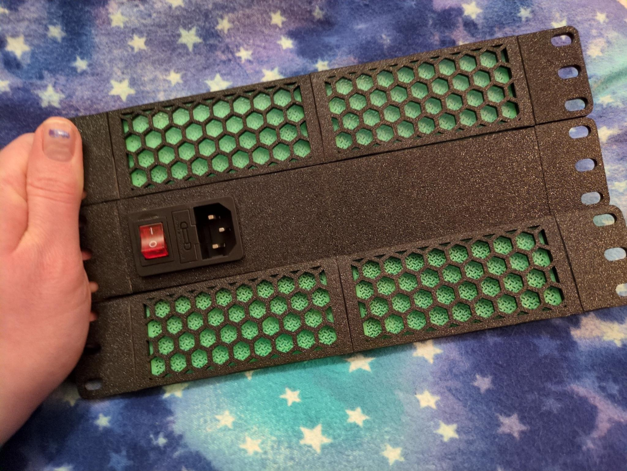 The 3D printable 10 inch rackmount PDU (v3) turned out pretty well! Matches my custom printed vent panels too.