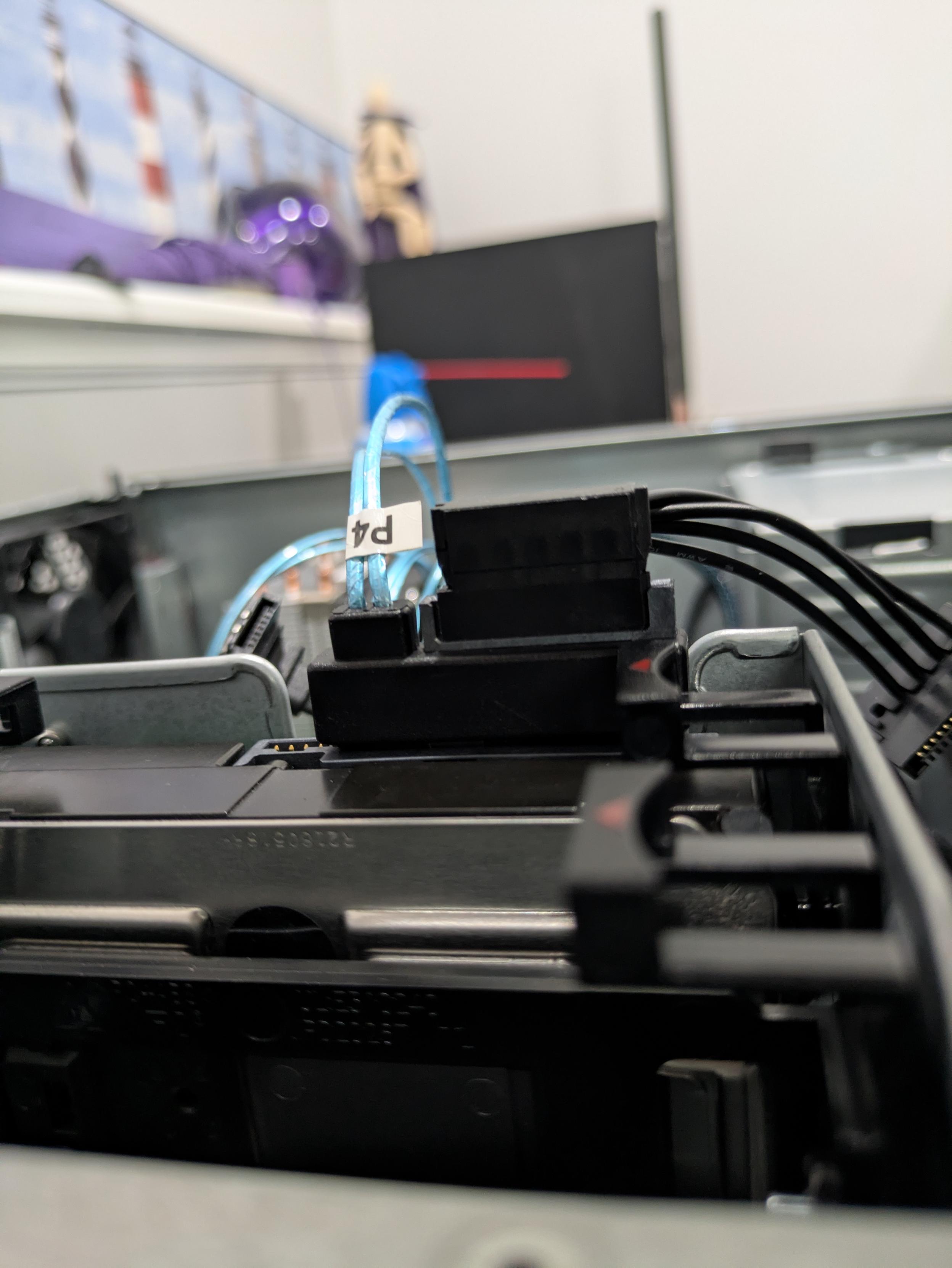 - I should have gone for a taller server - the fans are relatively quiet, but not quiet enough, and they have a weird hotpluggable connector, so I'm not going to be able to do the easy fan swap I wanted to. But boy to they blow. I'm also expecting it to complain loudly if I don't have any fans plugged in, so I can't hack this.