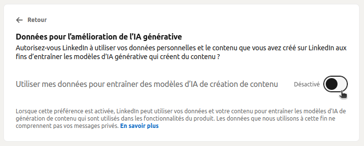 [🗞️Veille] LinkedIn s’autorise à utiliser vos données pour l’IA générative, comment refuser - Next https://next.ink/200635/linkedin-sautorise-a-utiliser-vos-donnees-pour-lia-generative-comment-refuser/