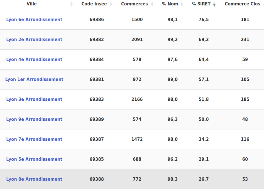 Nous sommes pas trop mal sur la complétion des commerces sur #Lyon mais il y a encore du travail, notamment dans le 7ème, 5ème et 8ème arrondissement.