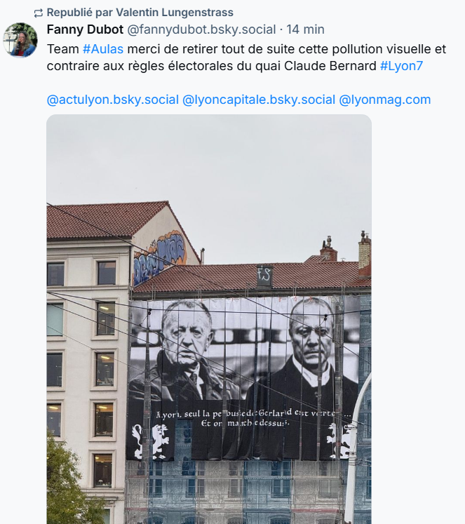 La team Aulas se sent pousser des ailes et montre un peu de son vrai visage : appel à la violence physique, publicité sauvage, mépris des règles de débat démocratique et de campagne électorale... Voilà à qui nous avons affaire.