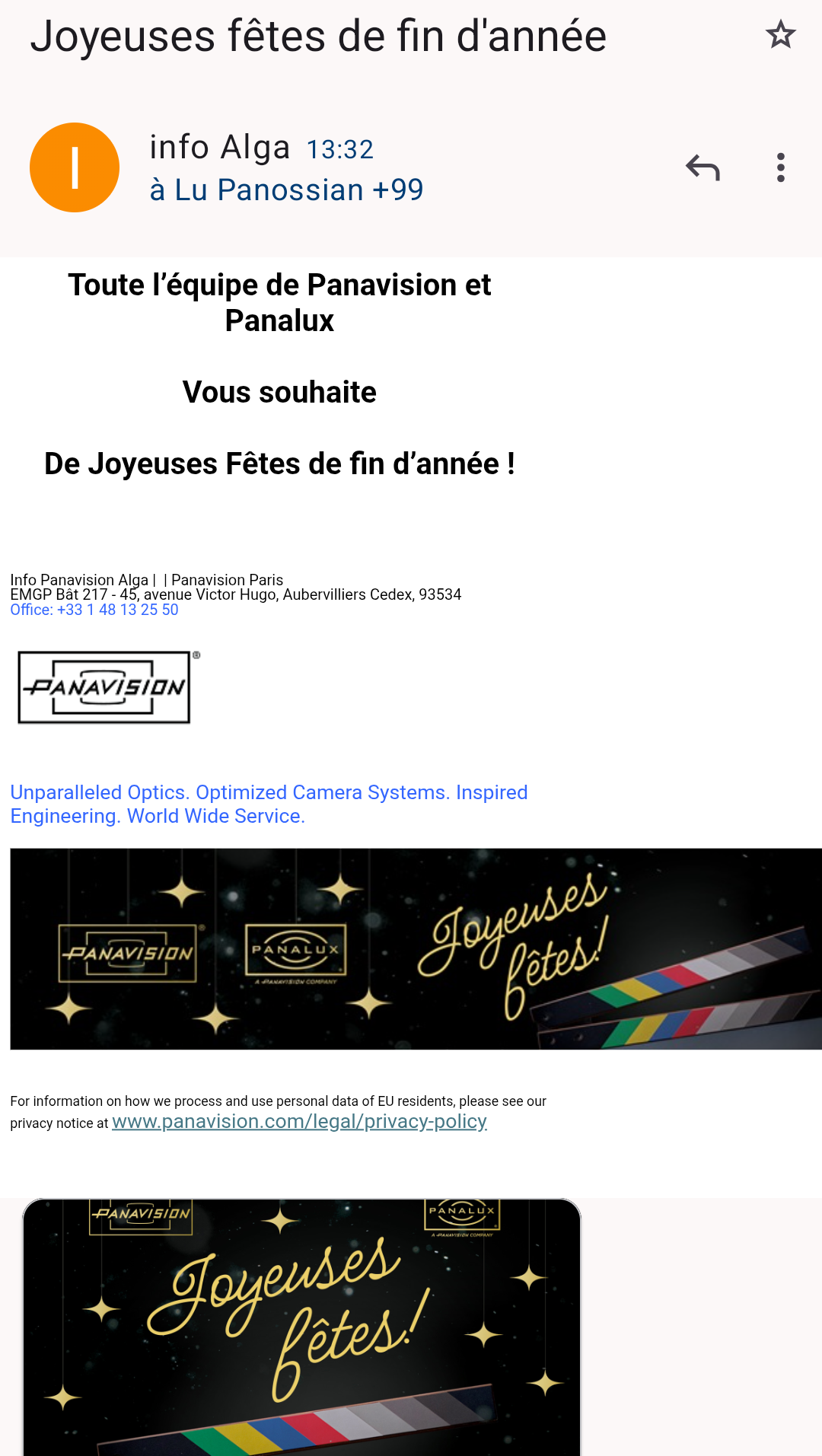 #Panavision vient d'envoyer un mail de fêtes de fin d'année sans masquer les destinataires 😭