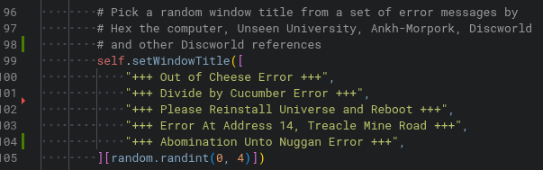 I'm re-reading Monstrous Regiment by Terry Pratchett, and decided to add a new random error window title to @novelwriter 😁