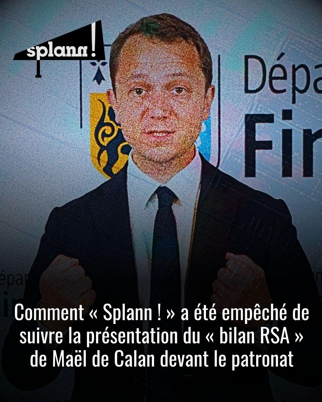« Splann ! » aurait aimé entendre Maël de Calan faire le bilan de son « plan RSA », mercredi soir, devant le patronat finistérien. Mais contrairement à nos confrères de la presse régionale, notre équipe était persona non grata. 🤐 1/