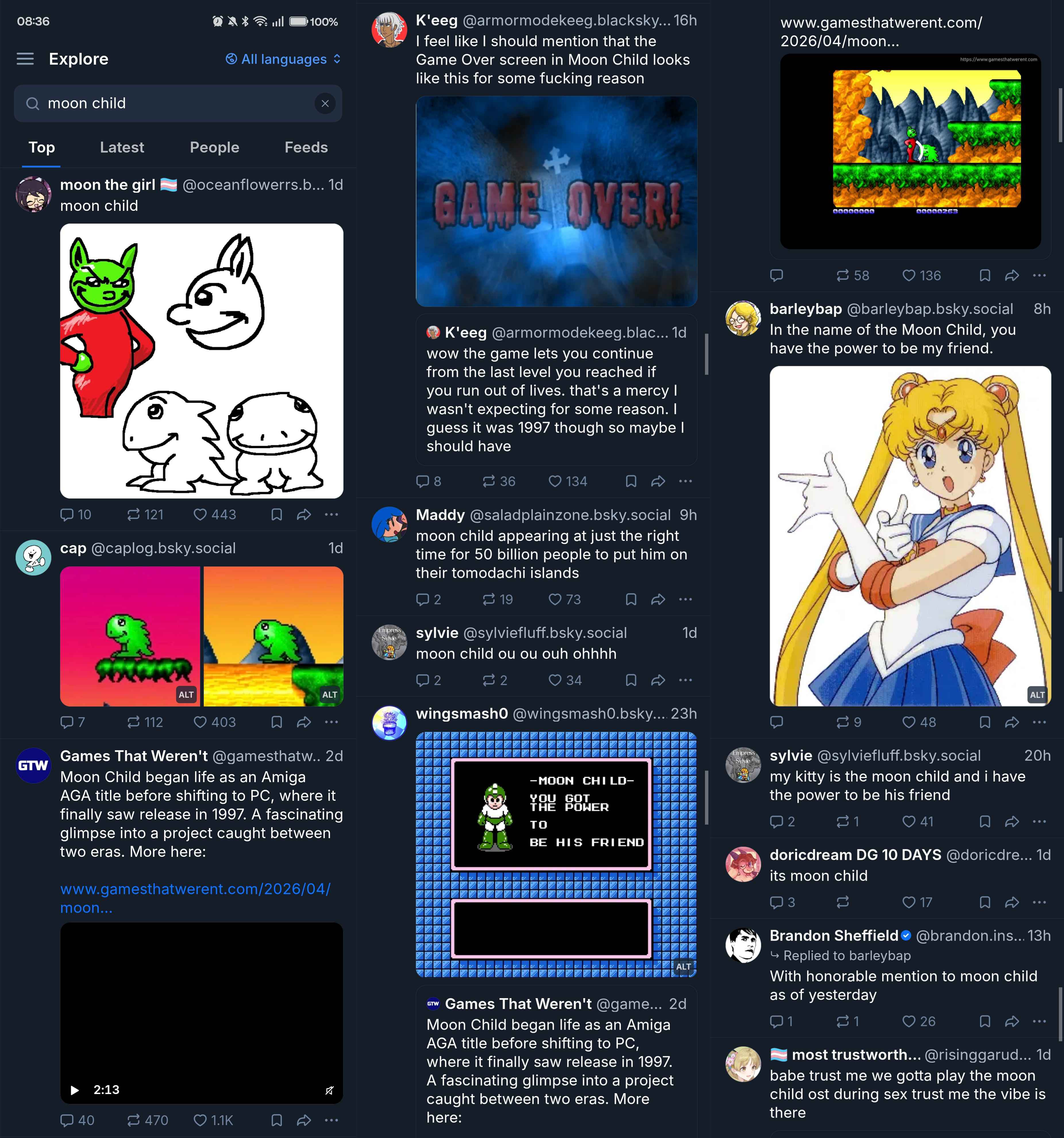 Apparently, our 1990s Moon Child Amiga / Windows game is going viral on Bluesky. 😆