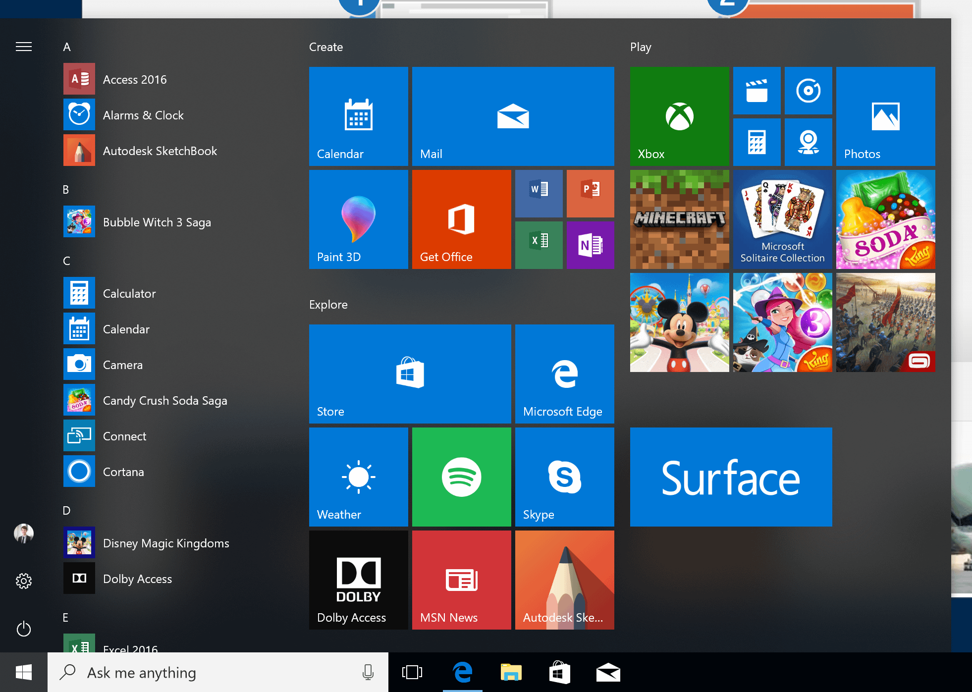 - pas de Onedrice, de cortana, et tutti quanti